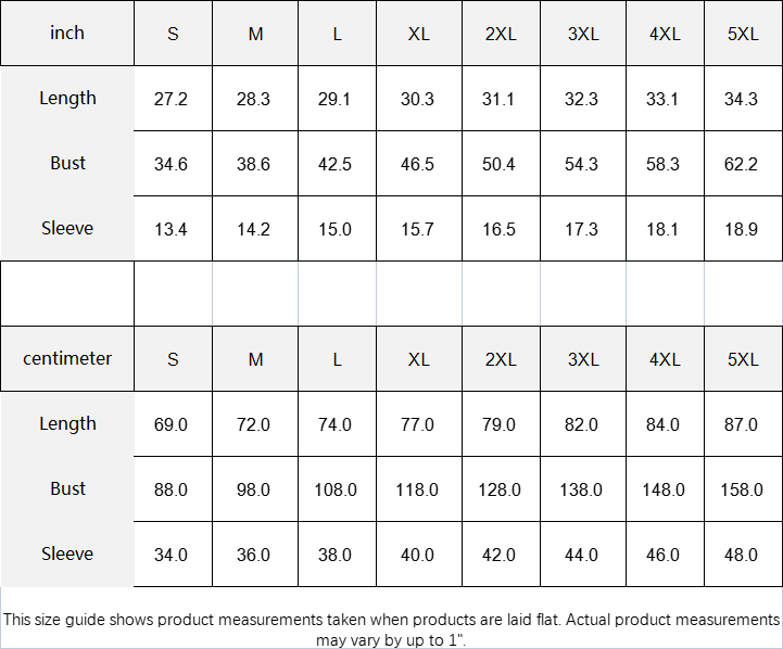 | centimeter | S | M | L | XL | 2XL | 3XL | 4XL | 5XL |