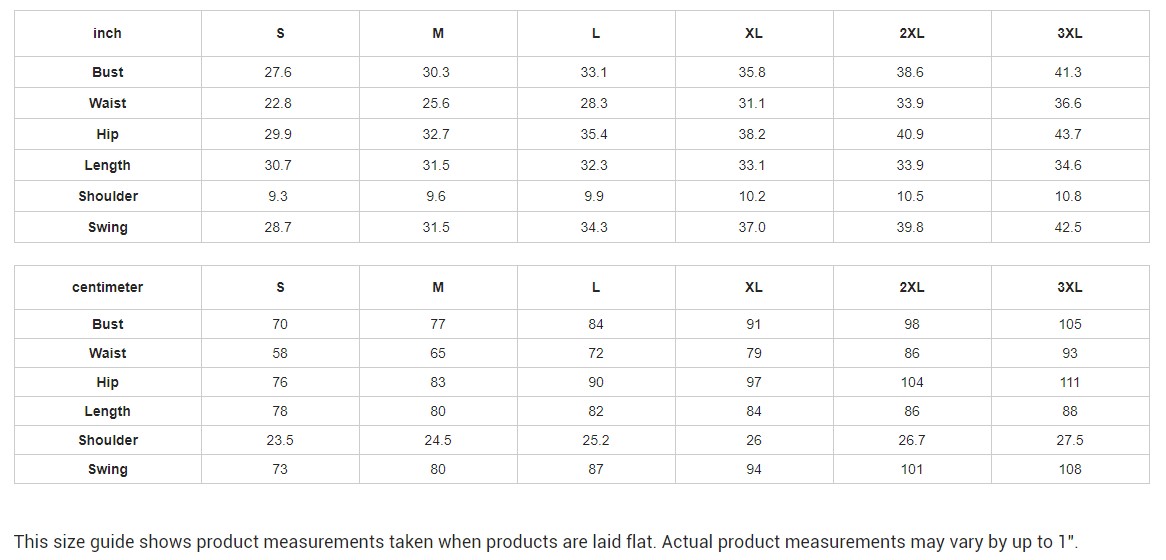 This size guide shows product measurements taken when products are laid flat. Actual product measurements may vary by up to 1″.