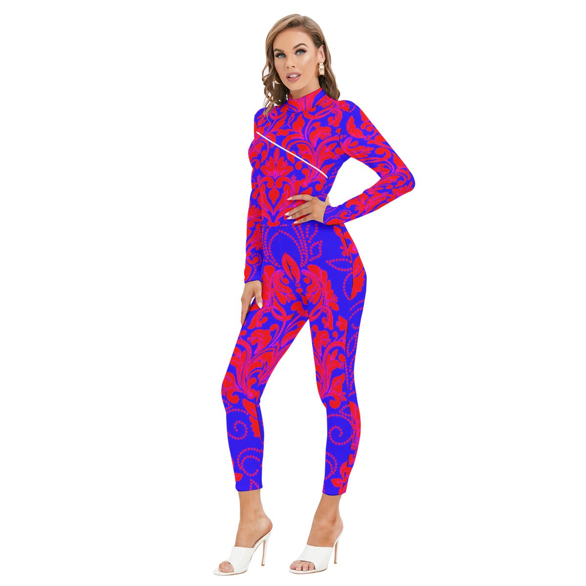 All-Over Print Women’s Long-sleeved High-neck Jumpsuit With Zipper