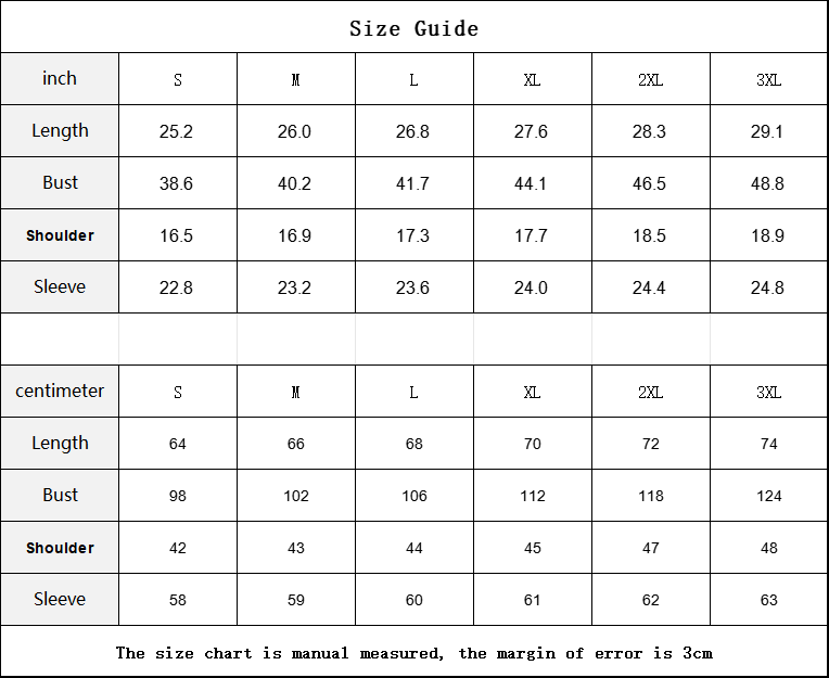 centimeter S M L XL 2XL 3XL