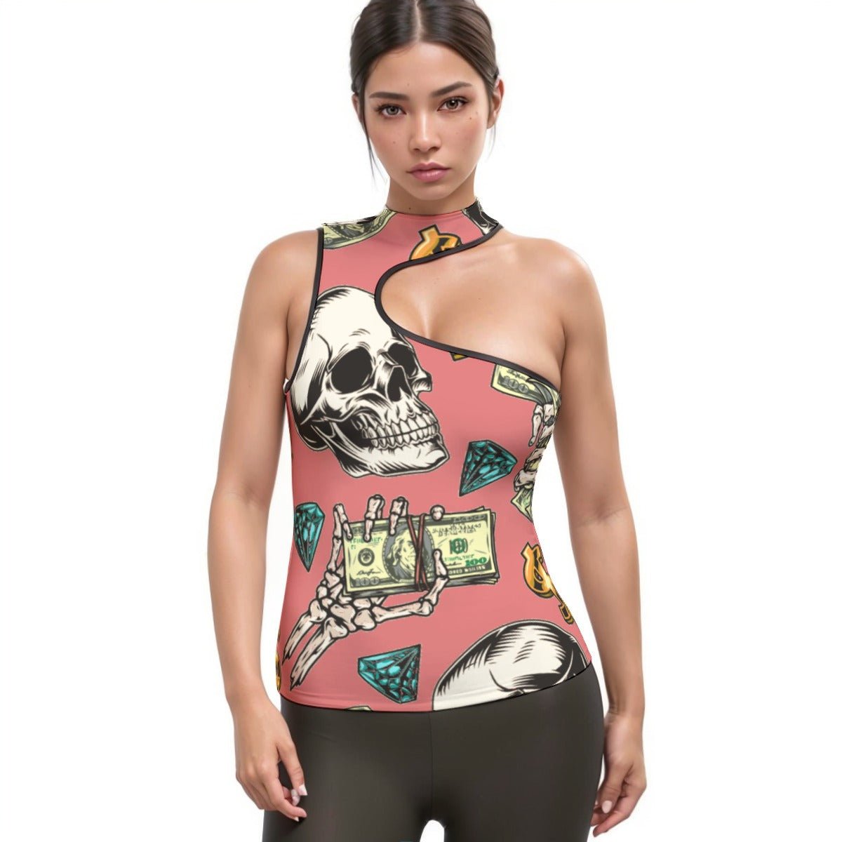 fullbreedboutique Print Women’s Halter Sleeveless Asymmetrical Tank Top