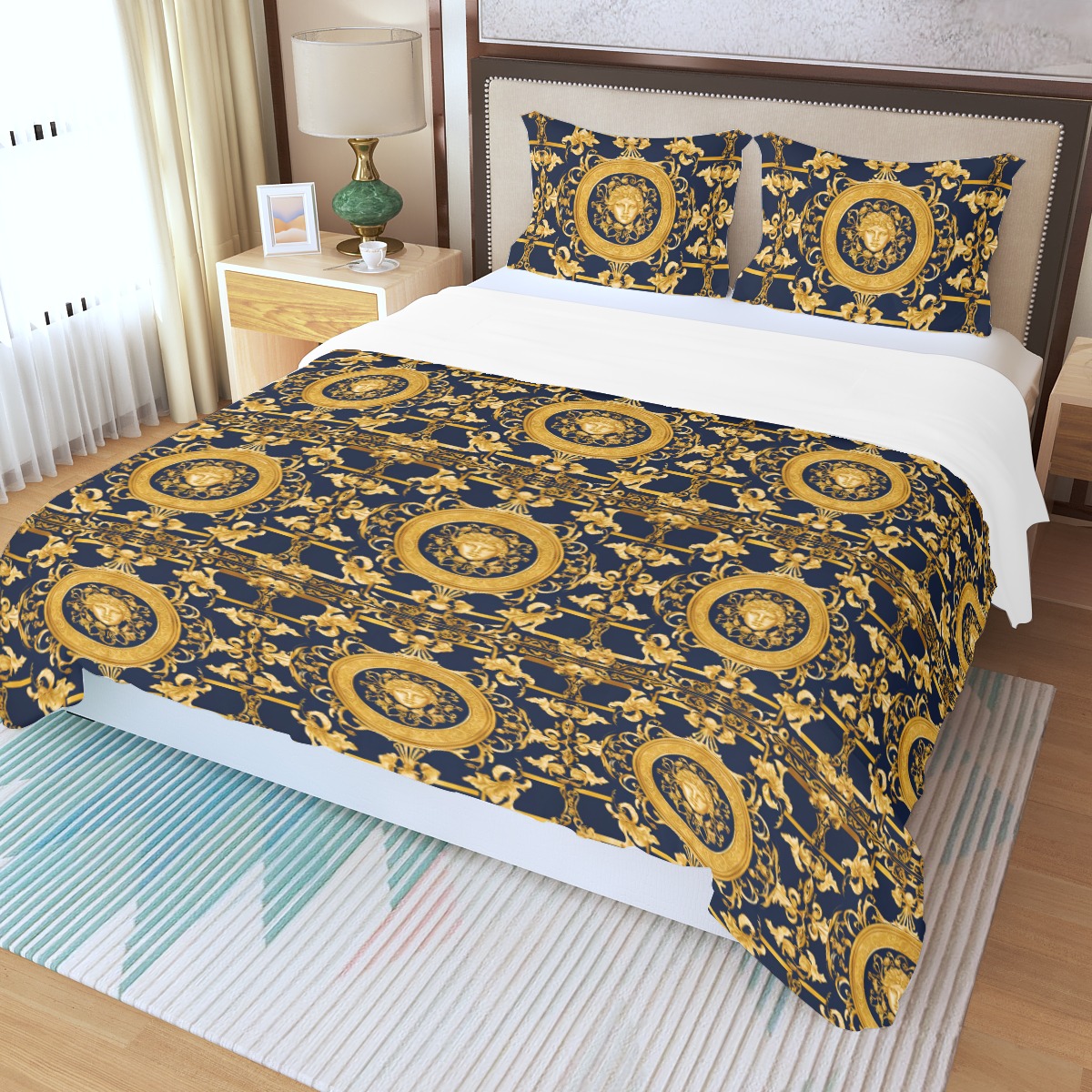 This set includes one quilt cover with zipper fastening and two pillowcases. The insert is not included. Single-sided printing allows for stylish aesthetics without compromising on comfort.
