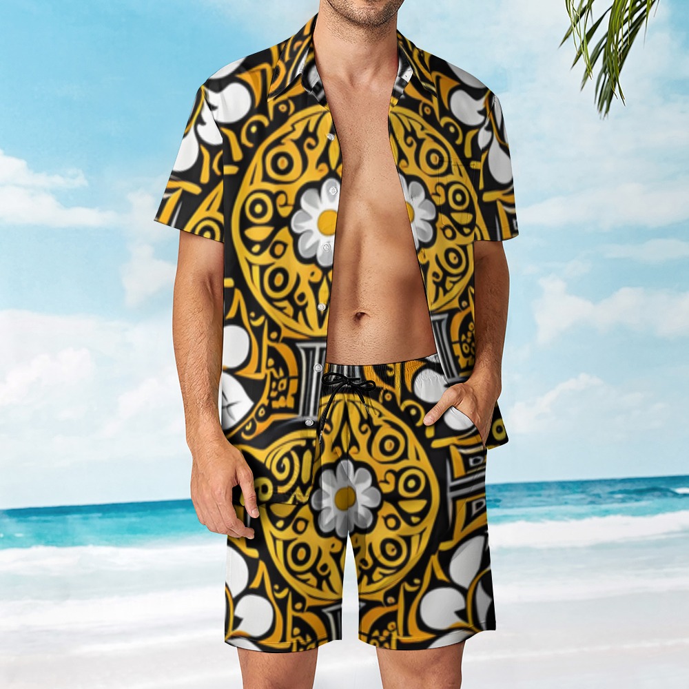 PREFERRED MATERIALS: The high-quality fabrics used in our men's suits are lightweight and comfortable, quick-drying, skin-friendly and breathable, and not easy to pilling. Product features: The top adopts a retro V-neck design, short sleeves, buttoned design, easy to wear, large size loose design, suitable for most people. COMFORTABLE AND DURABLE: Bottom men's beach shorts are quick-drying, comfortable, durable, and have a comfortable fabric. Perfect Match: A shirt with beach pants, paired with flip flops, sandals or sneakers for a loose, relaxed style that looks good and vibrant.