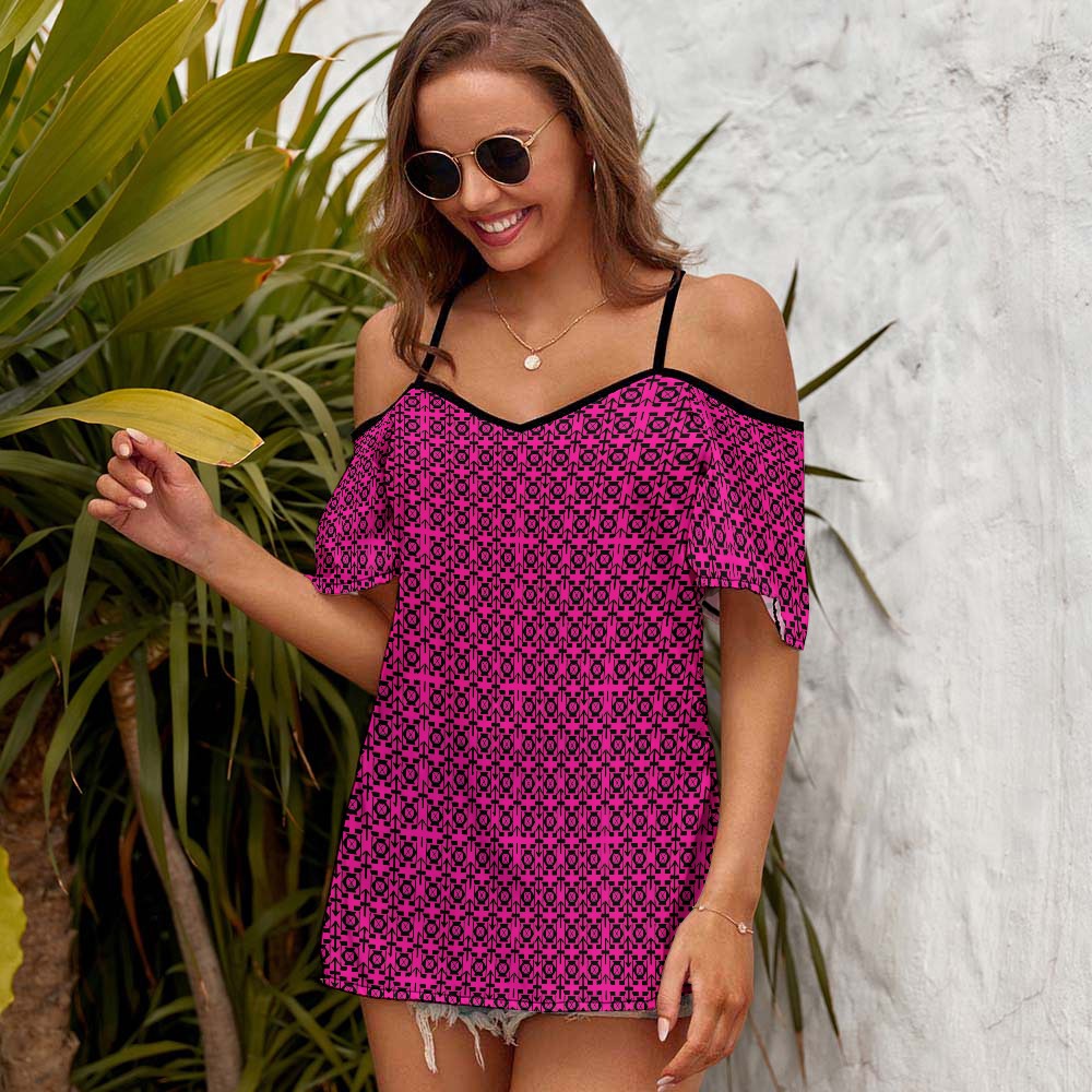 fullbreedcustom Casual Ladies Off Shoulder Sling Short Sleeve Top