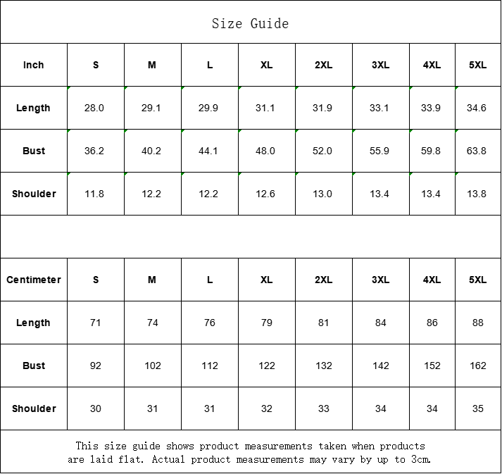 Centimeter S M L XL 2XL 3XL 4XL 5XL