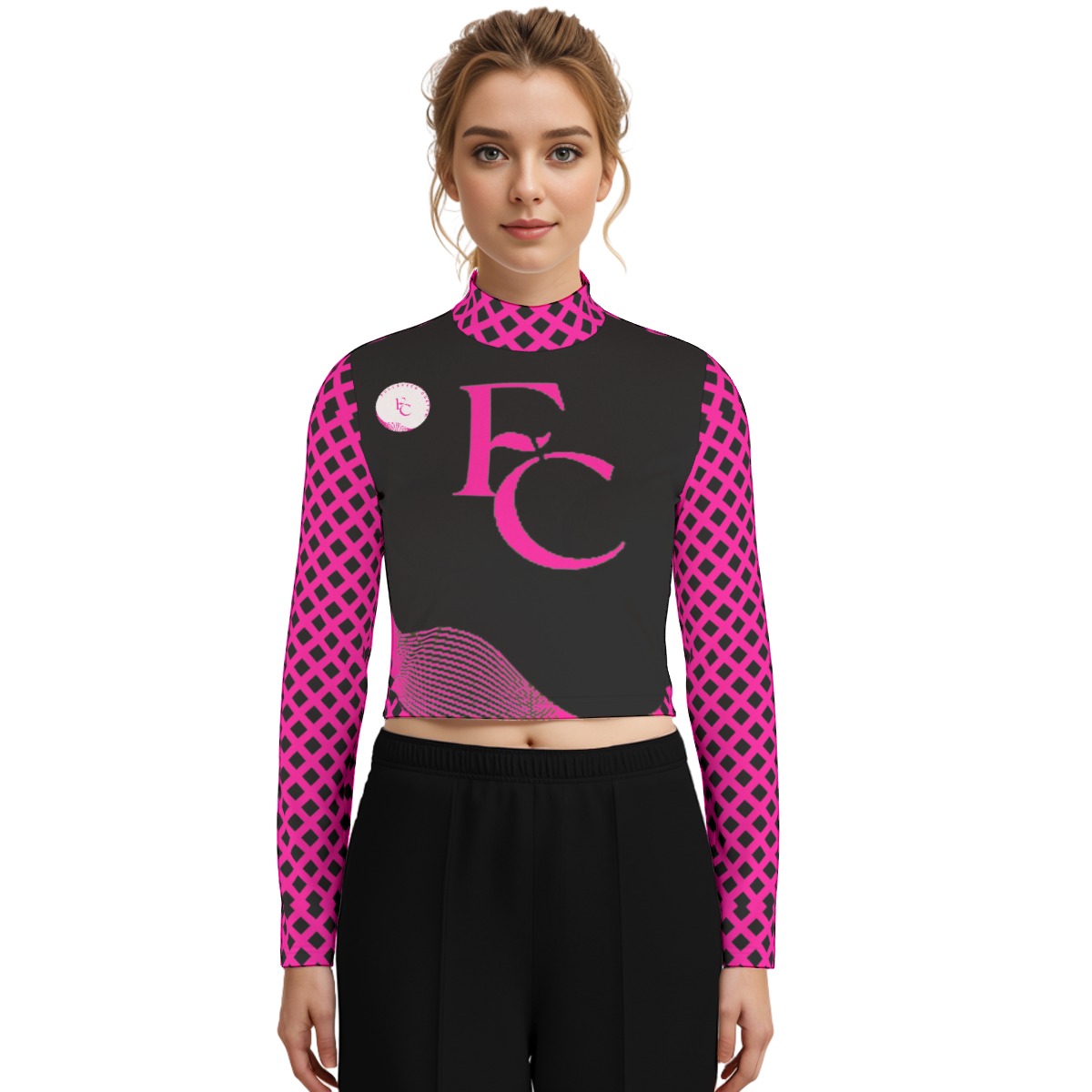 - Turtleneck, long sleeve, navel exposed