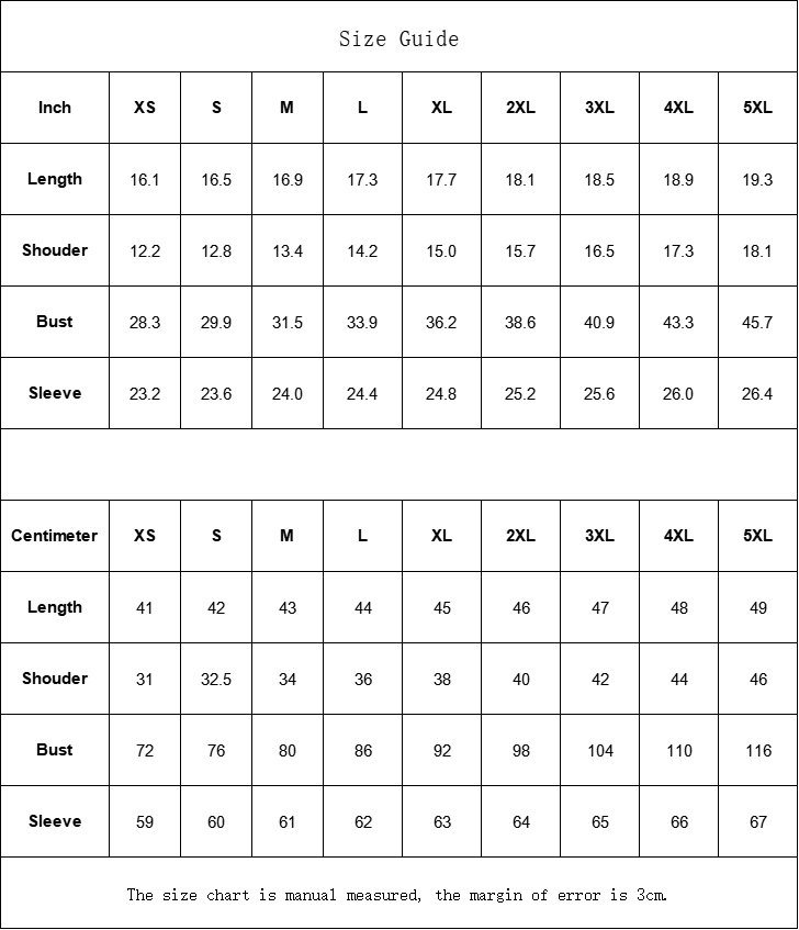 The size chart is manual measured, the margin of error is 3cm.