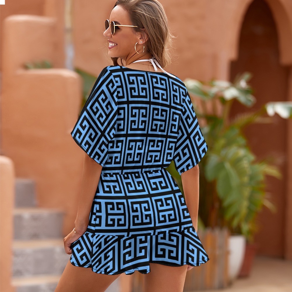 PREMIUM FABRIC: This one-piece smock dress is made of chiffon fabric, which has good breathability and drape, and is flowy and comfortable to wear. Fashionable Design: This women's one-piece cover-up dress has a V-neck design and a fishtail skirt, wearing it will make you look charming and sexy, flattering your figure, and trendy. Easy to put on and take off, this sexy women's cover-up dress shows you the special, beautiful, best and necessary cover-up to add joy to your wonderful vacation. VERSATILE DESIGN: This cute and sexy women's cover-up dress is used as a beach blouse and sun shirt, it is perfect for bikinis and has a cinched waist.