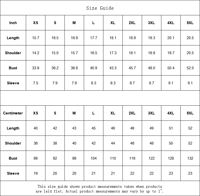 Centimeter XS S M L XL 2XL 3XL 4XL 5XL