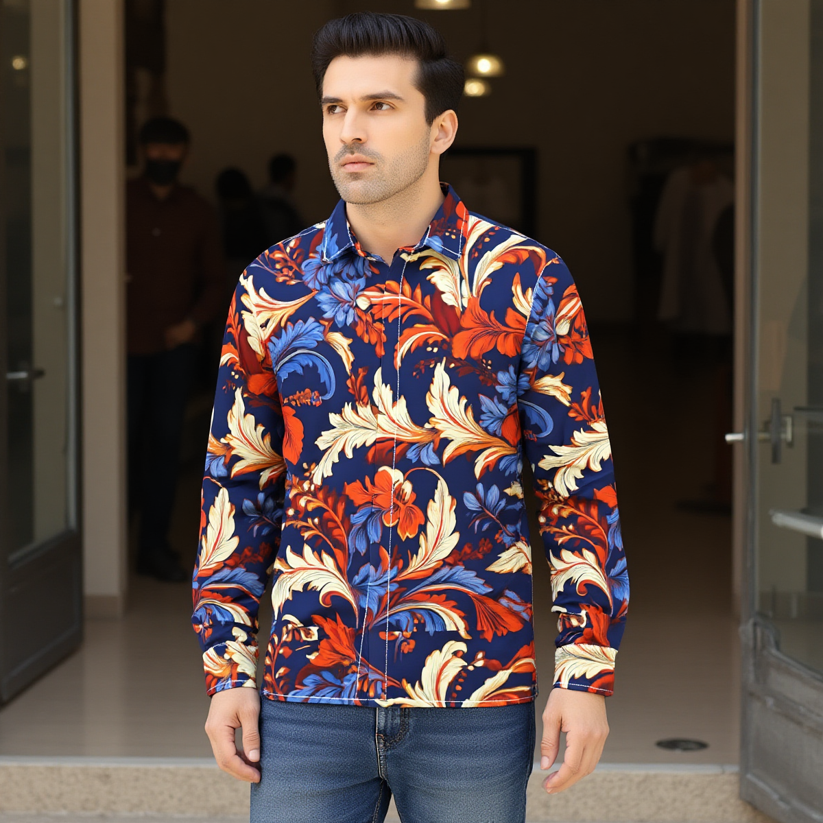 FullbreedCustom Print Men’s Lapel Collar Shirt With Concealed Placket