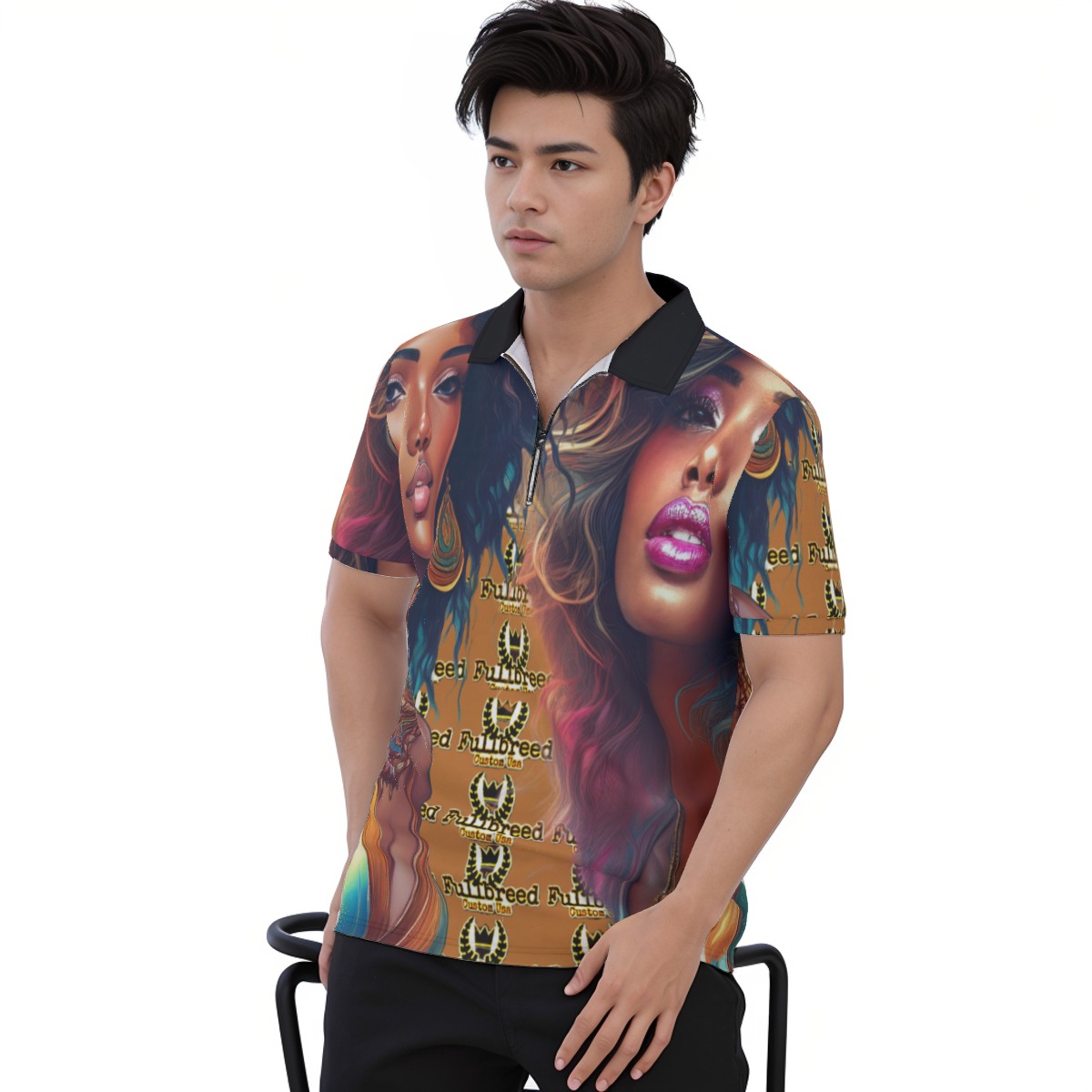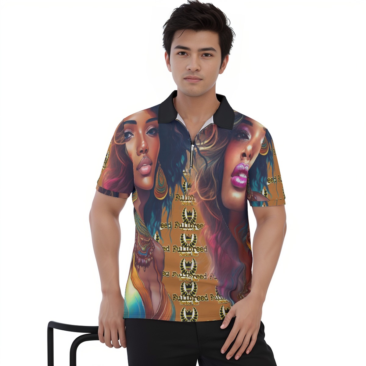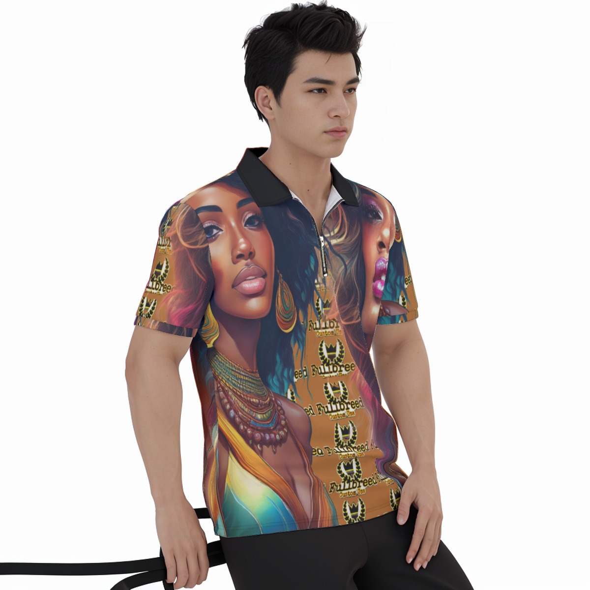 - With black zipper,half placket,short sleeve