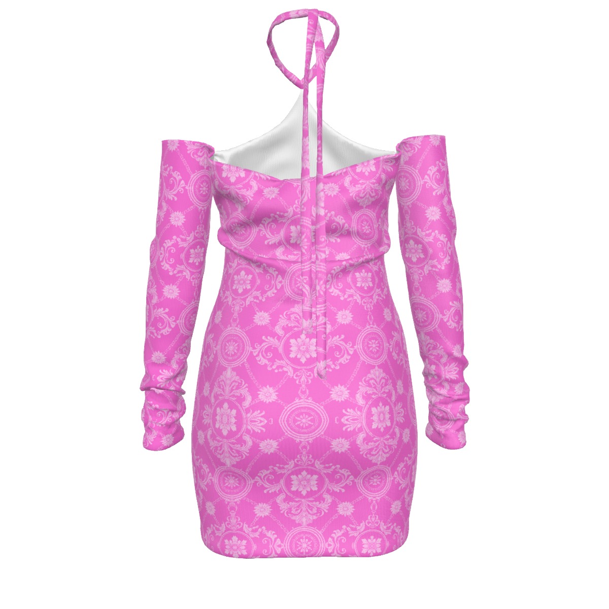 Dress features a cropped cut, off the shoulder detail with long sleeves, a halterneck, stretch and lined.It’s a sexy women’s dress