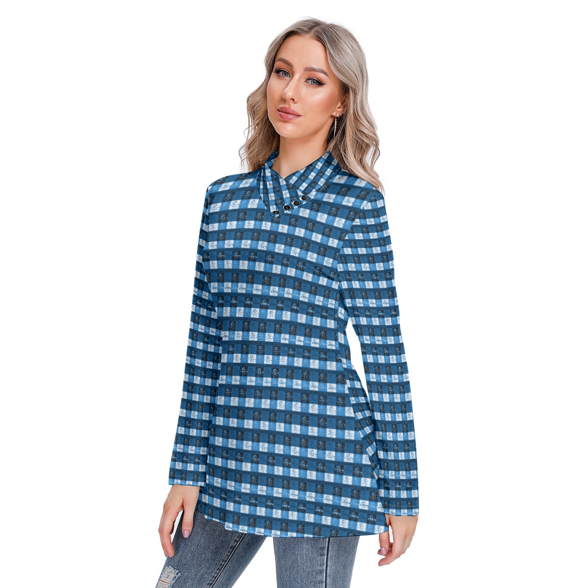 The pile collar design makes this blouse can be worn in slightly cold weather. It is fashionable with jeans.