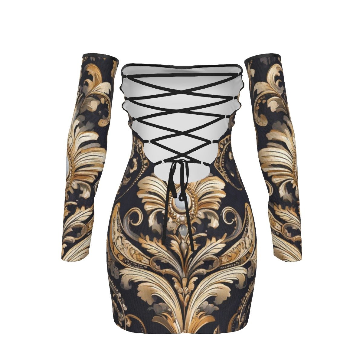 fullbreedcustom Print Women’s Off-shoulder Back Lace-up Dress