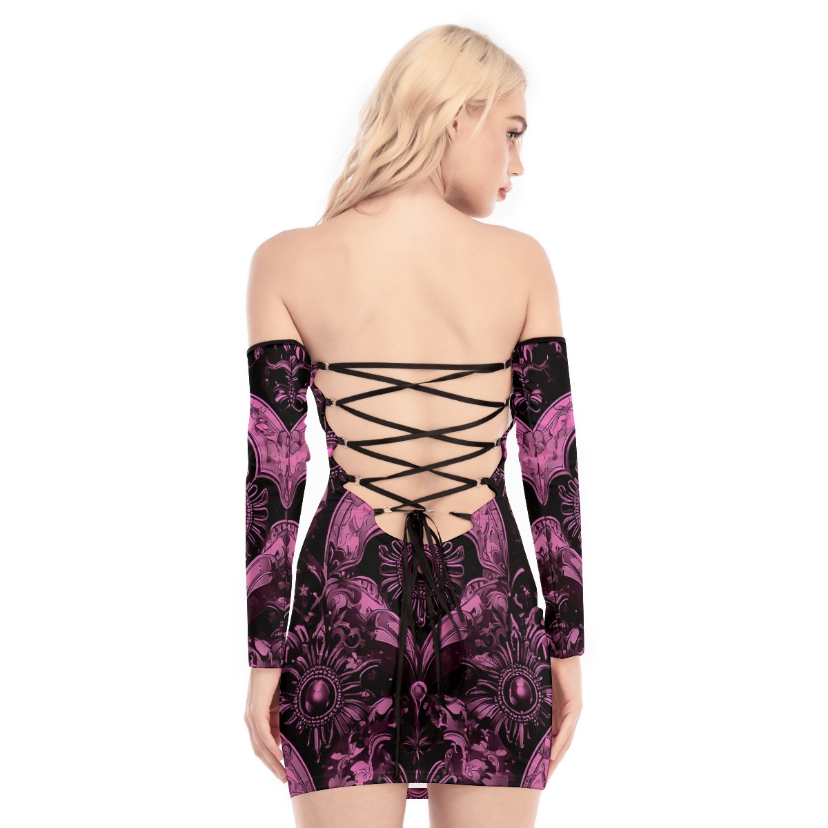 fullbreedcustom Print Women’s Off-shoulder Back Lace-up Dress