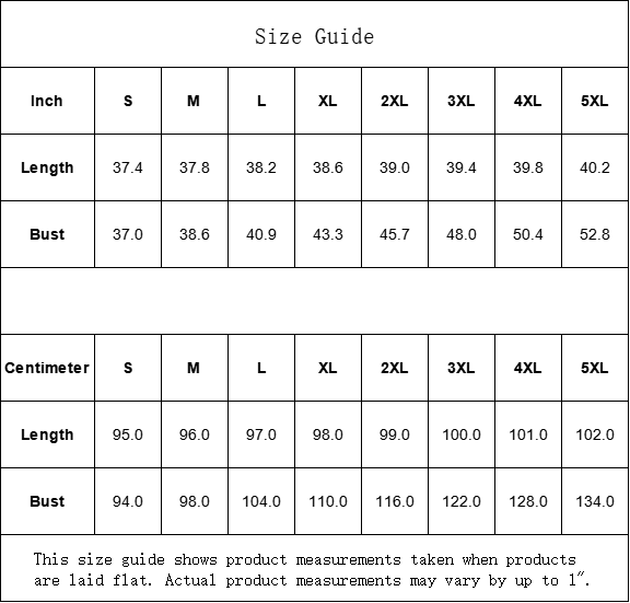 Inch S M L XL 2XL 3XL 4XL 5XL