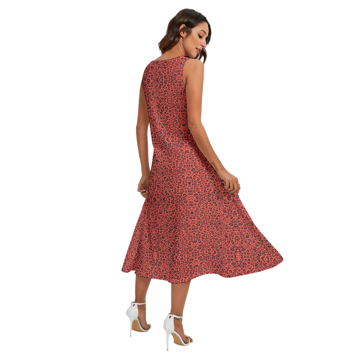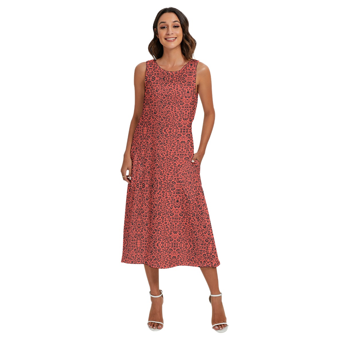 Sleeveless long skirt, classic round neck, two diagonal pockets on the side, allowing you to pose many casual poses