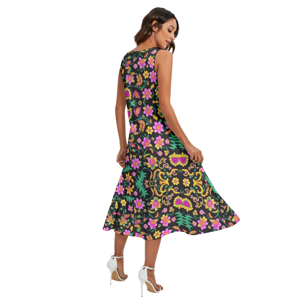 Sleeveless long skirt, classic round neck, two diagonal pockets on the side, allowing you to pose many casual poses