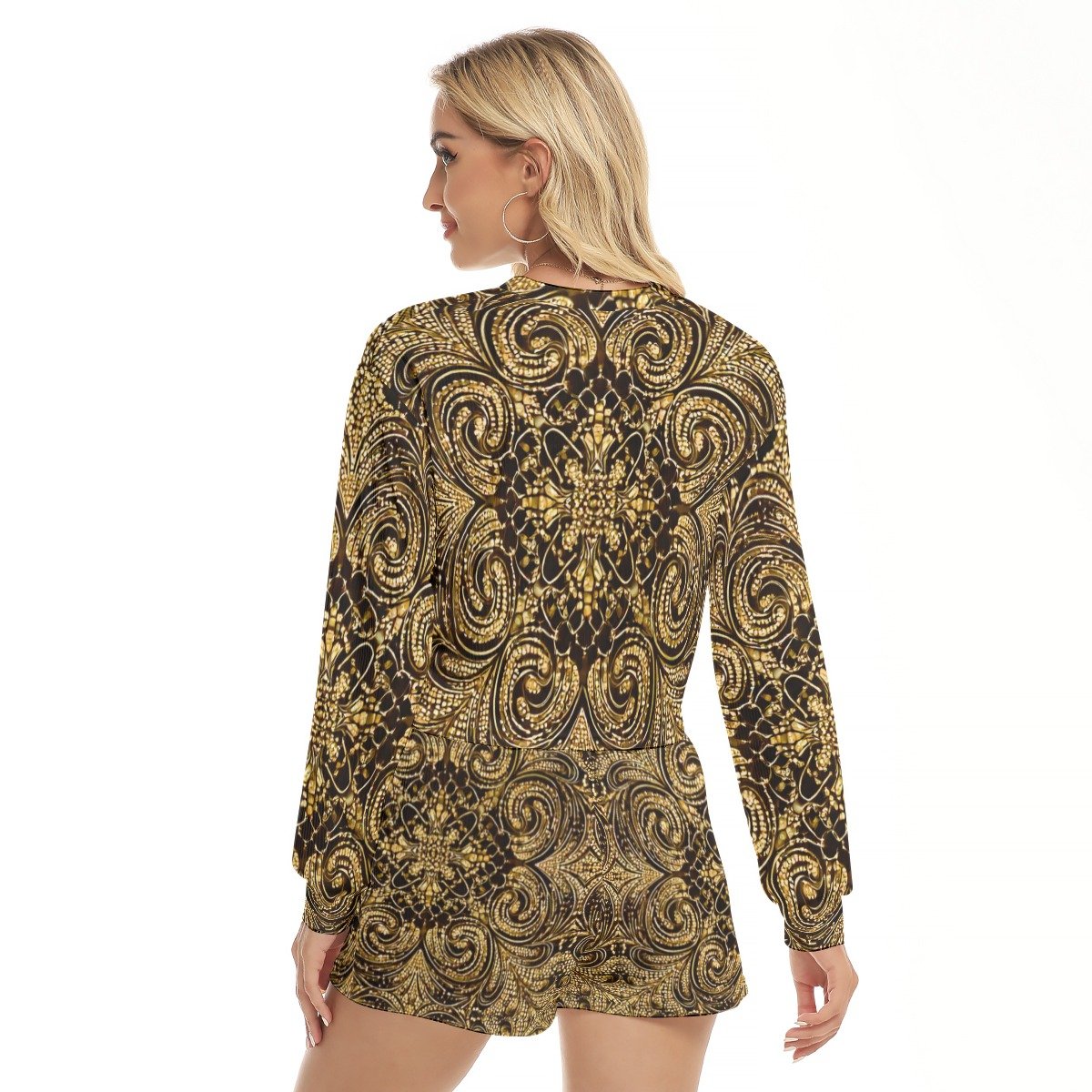 • Elastic waist closure, long sleeves, short pants, crew neck