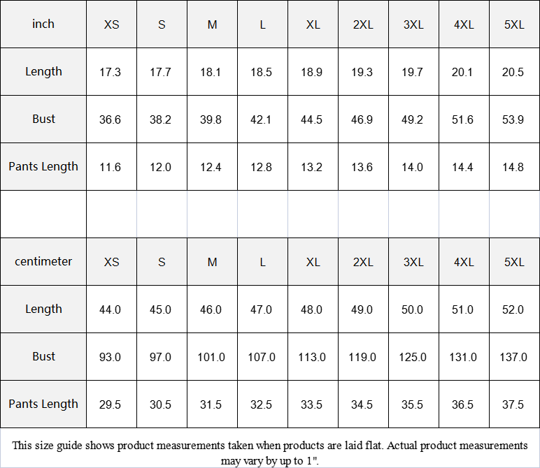 centimeter XS S M L XL 2XL 3XL 4XL 5XL