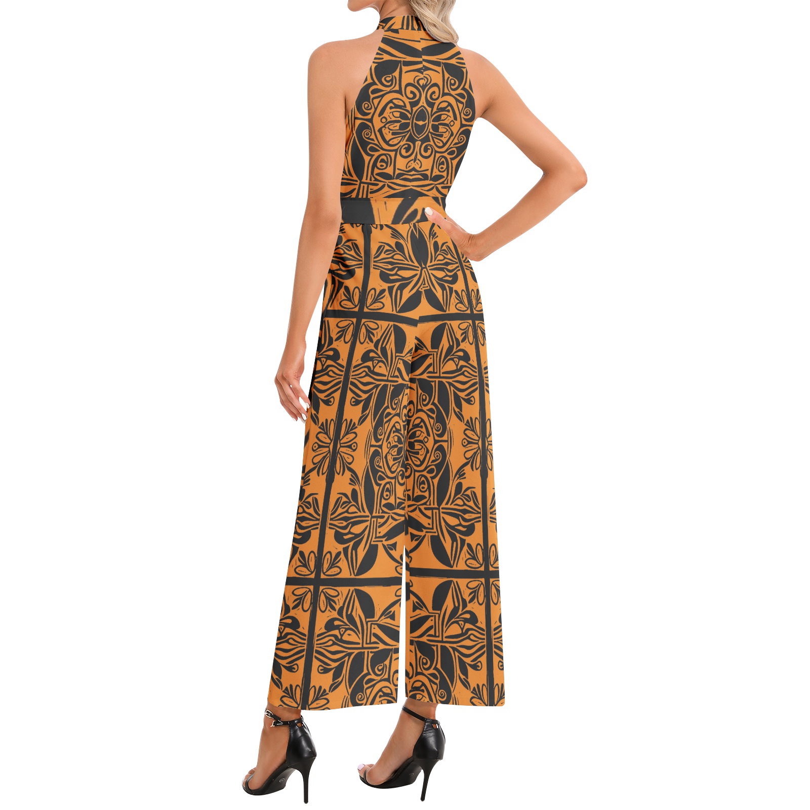 Sleeveless, Long length, Halter neck, High waist, Two inseam pockets, Belted jumpsuit