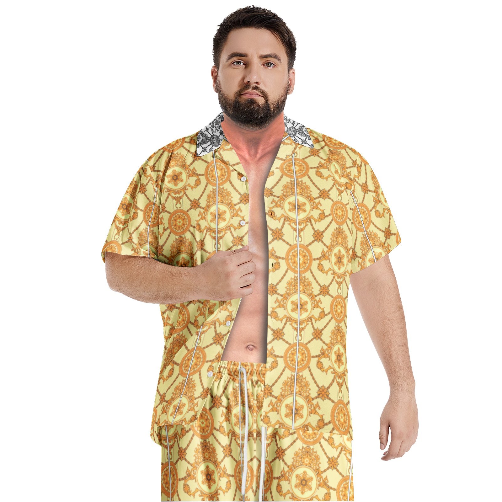 Stylish Design: The men hawaiian shirt sets designed with minimalist design style, classic regular fit, button down and drawstring closure.